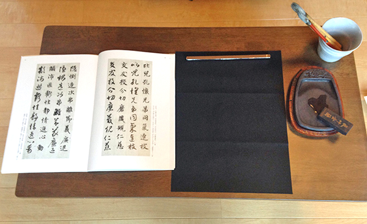 書の学習の軸となる臨書指導では、自分の字の癖を出さず、有名な書家の名作をお手本にして忠実に書きます。